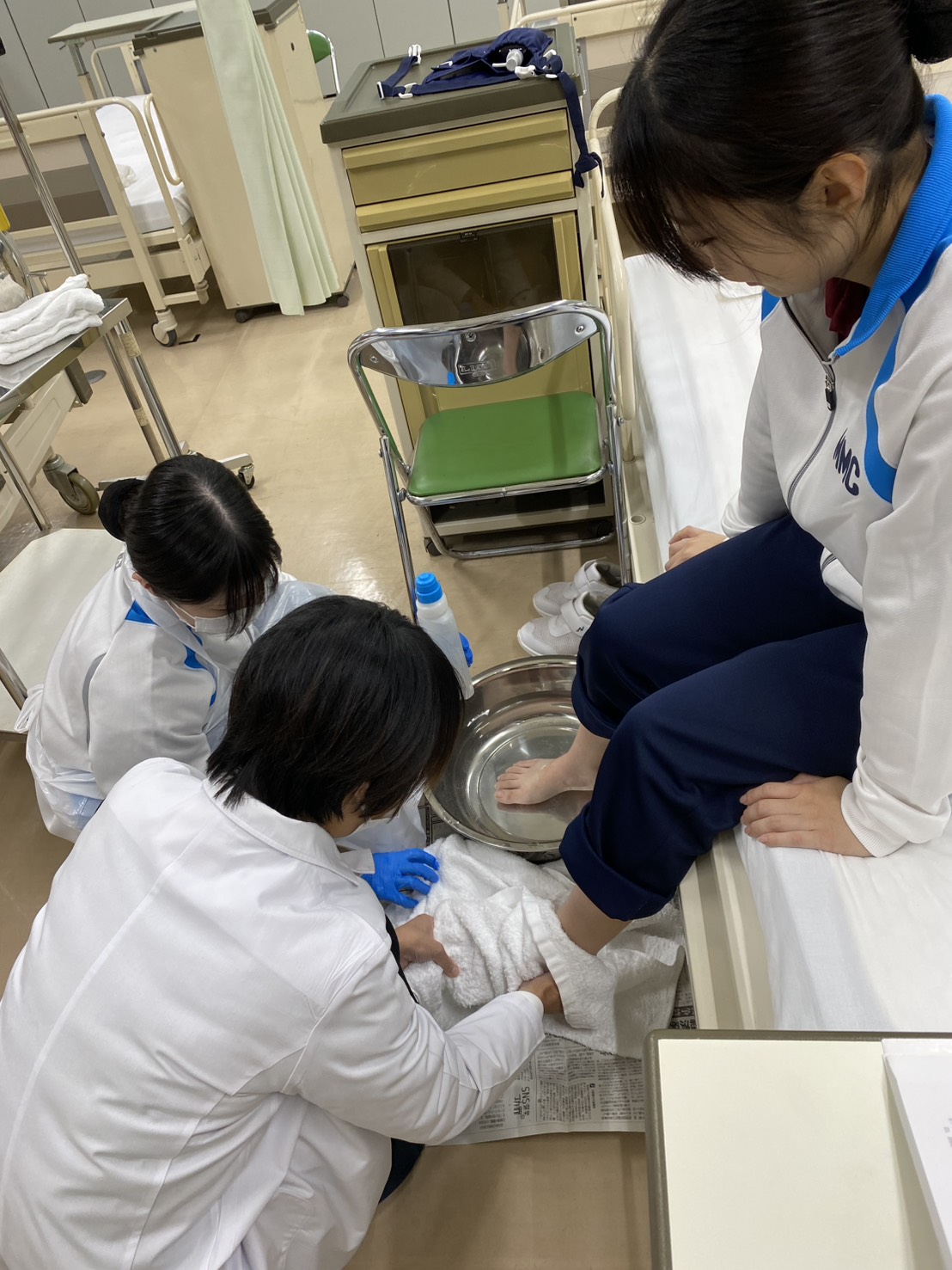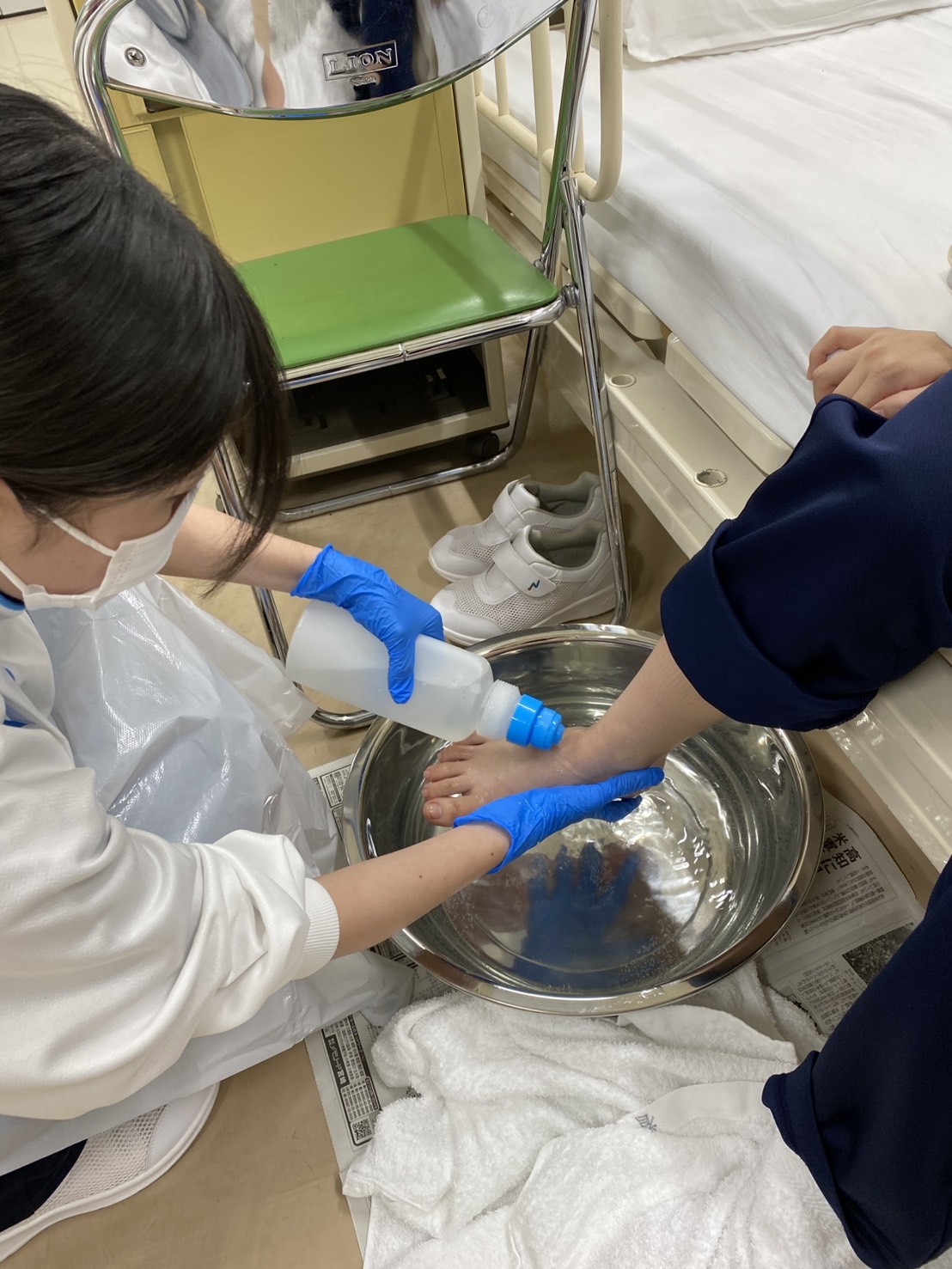 湯温の調整、環境整備、患者への声かけなど、実際の看護場面を想定しながら手順を確認しました。