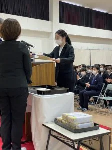 卒業式を翌日に控えたこの日、本校では前日表彰式および同窓会入会式が行われました。