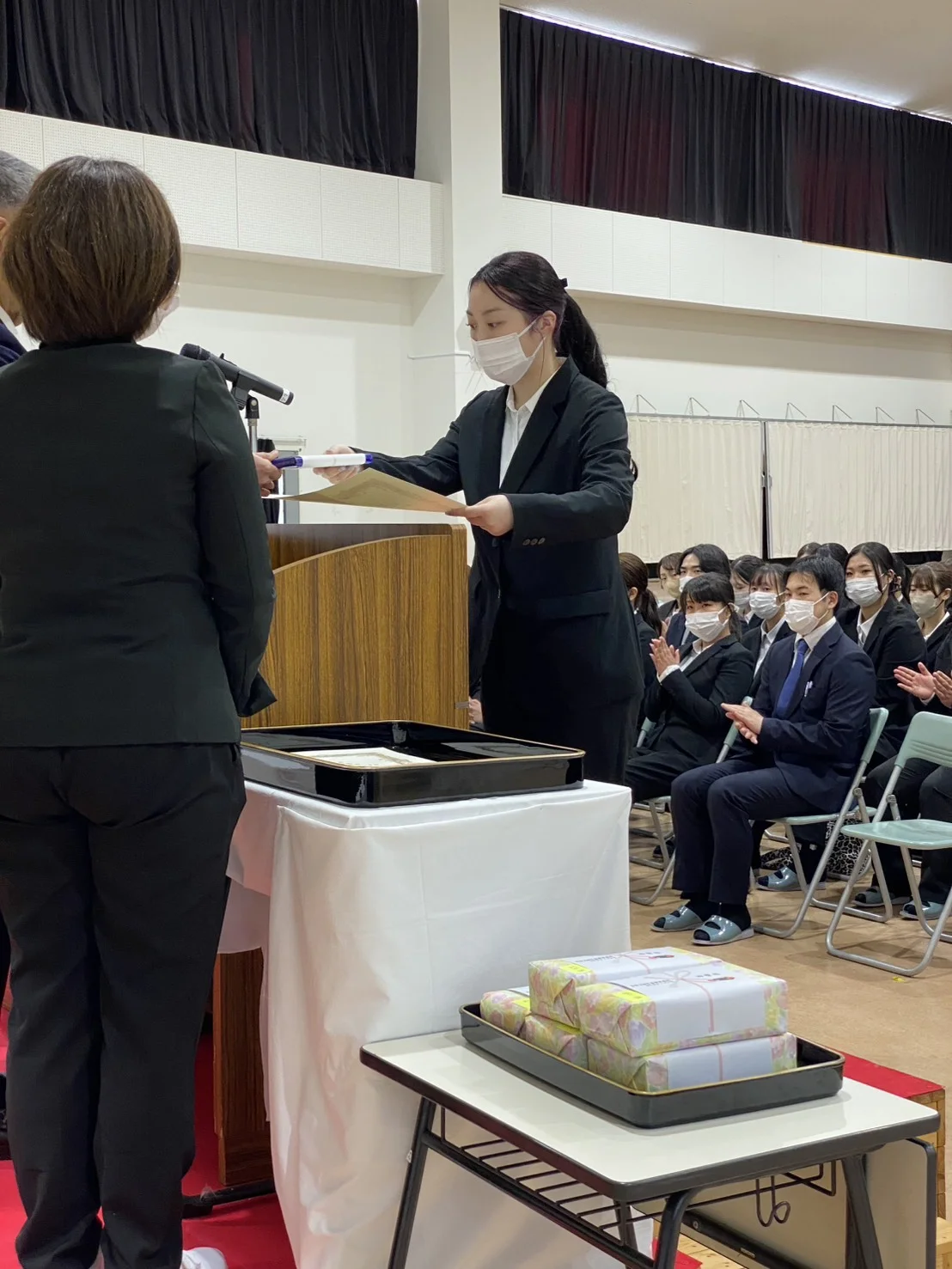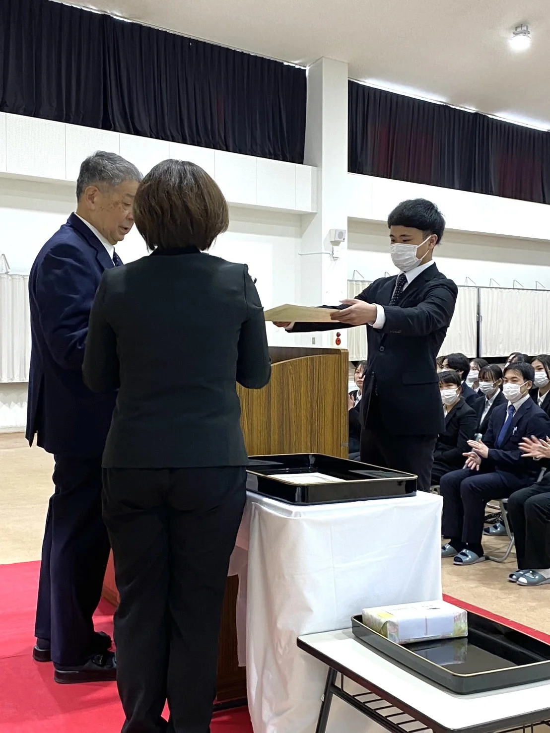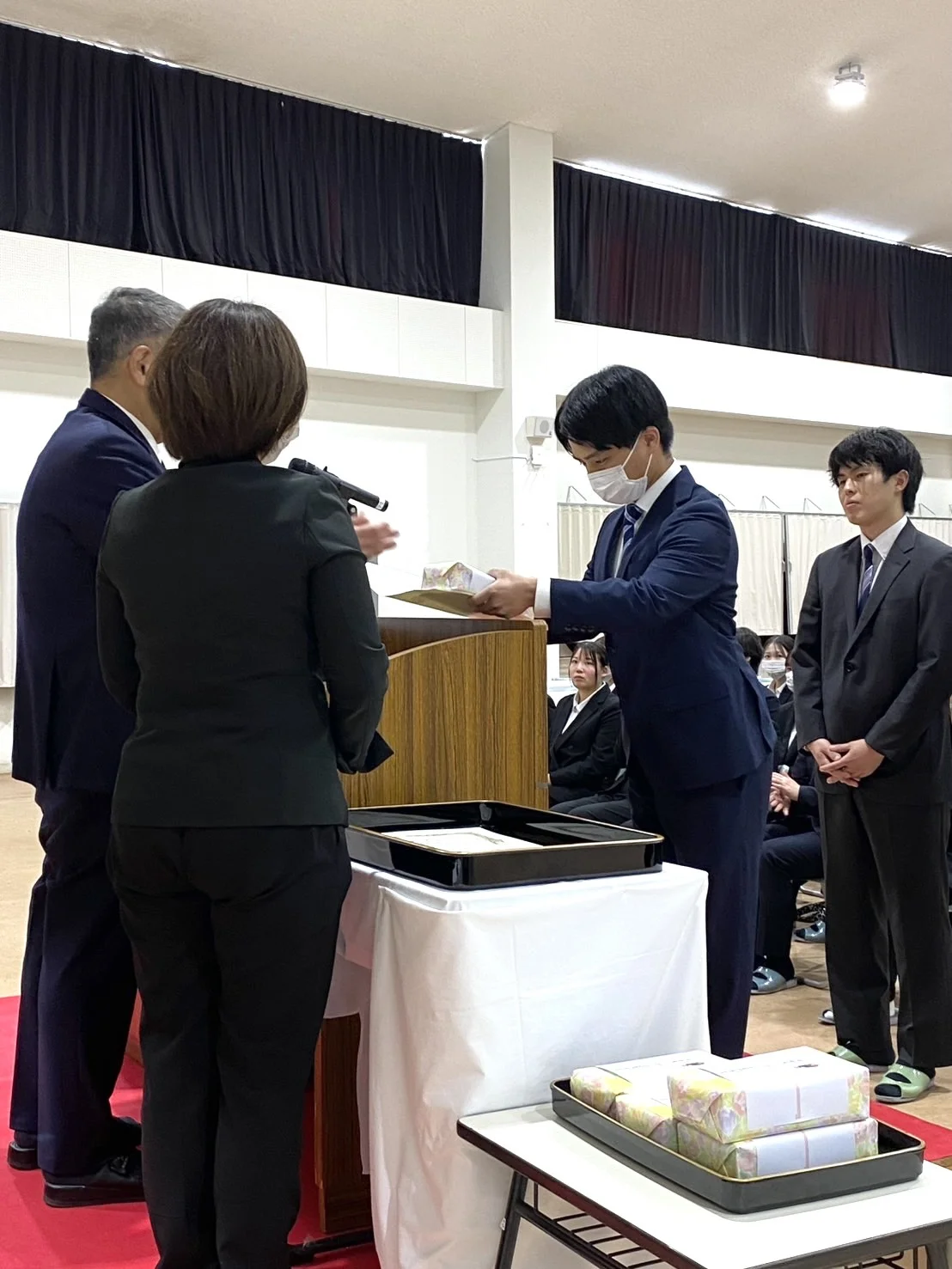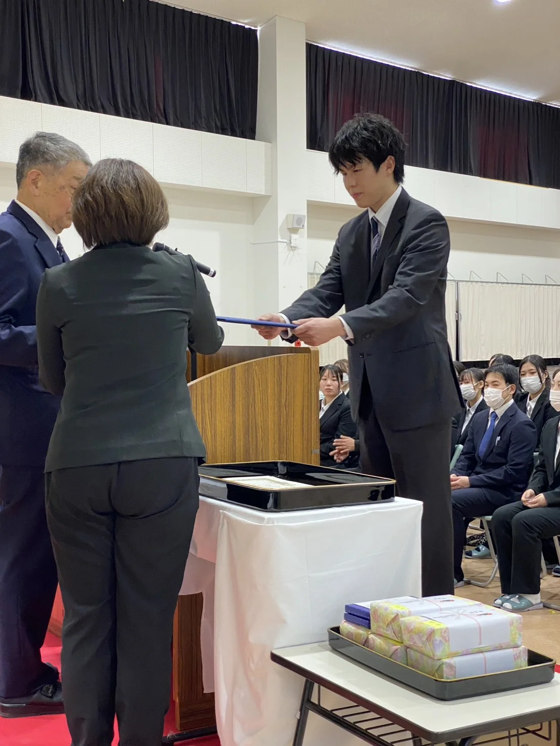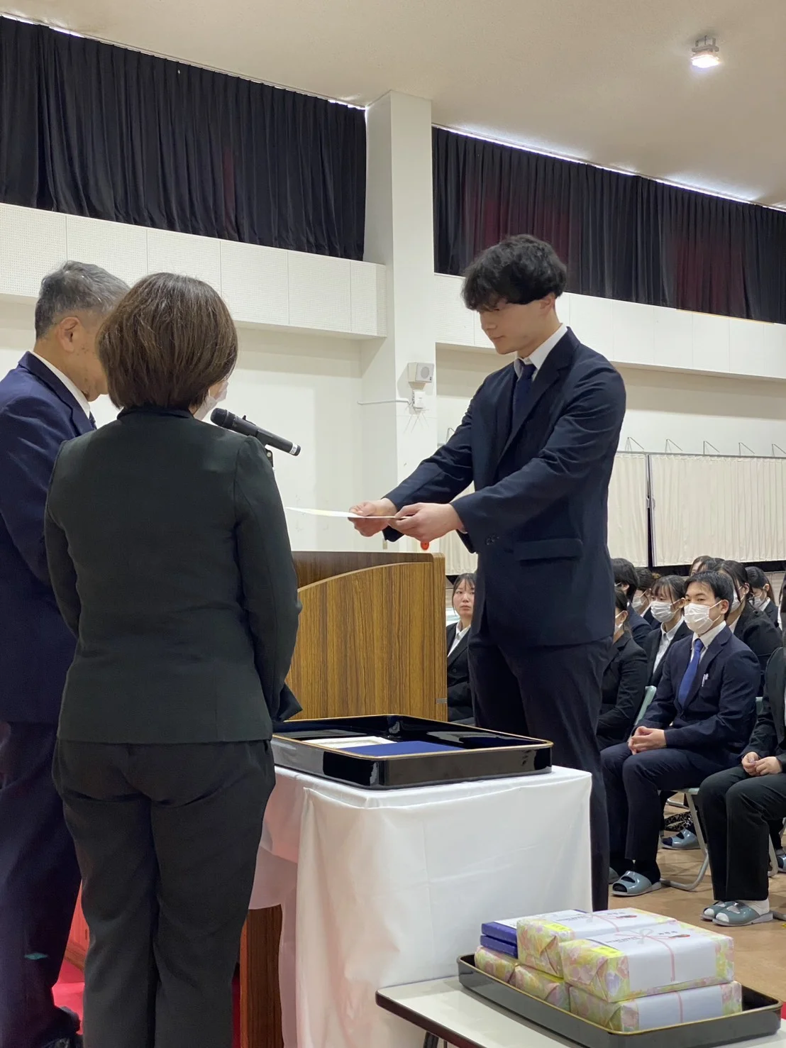 前日表彰式では、在学中の学業成績や学校生活への取り組みが特に優秀であった学生に対し、各団体より表彰が授与されました。