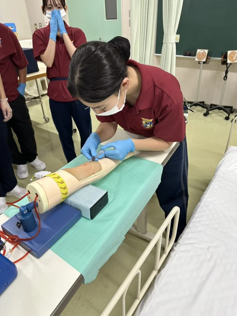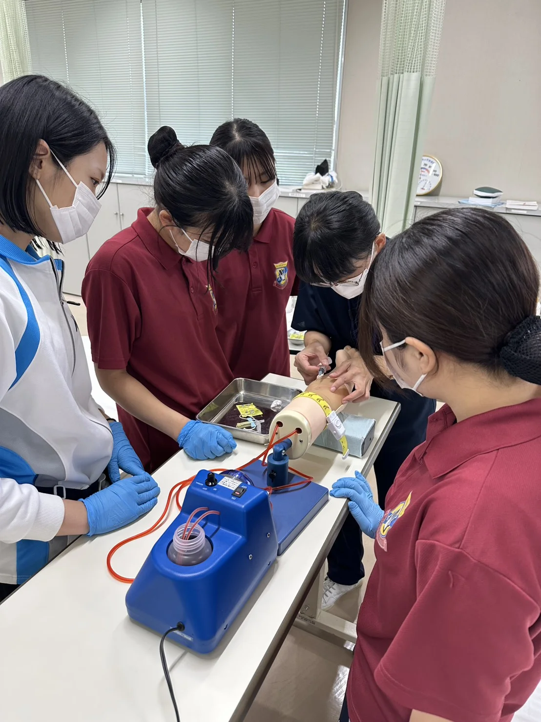 初めての採血演習に緊張した様子も見られましたが、正しい手順や安全な実施方法を学ぶ良い機会となりました。