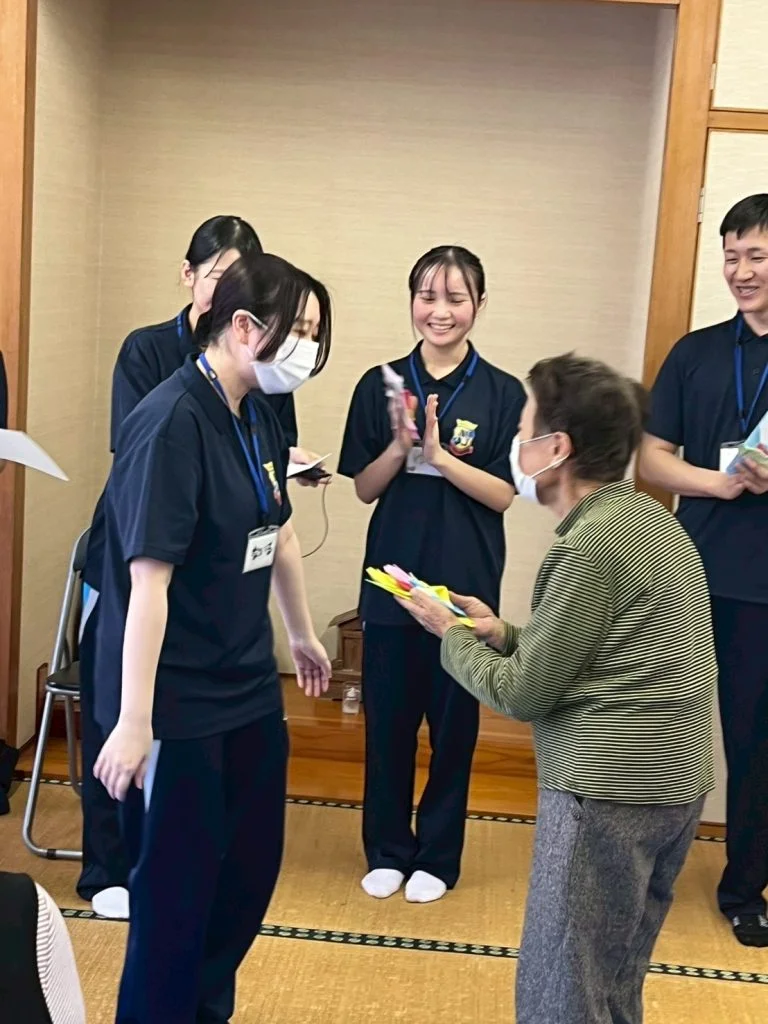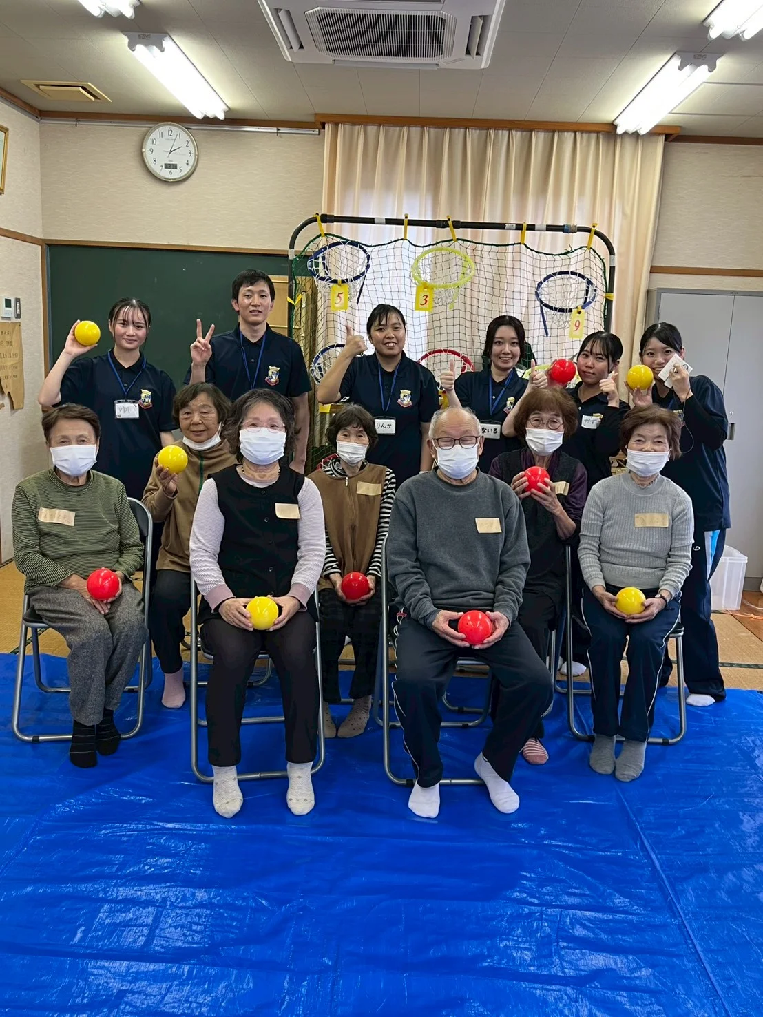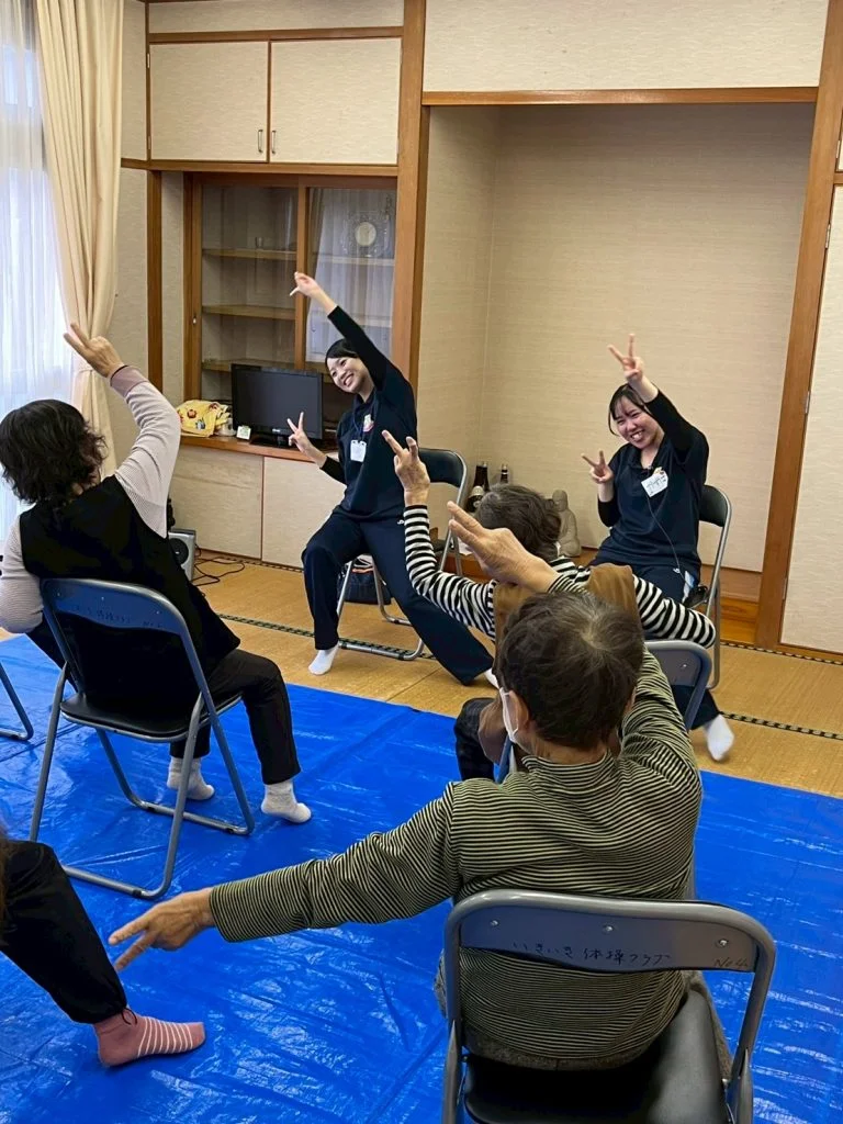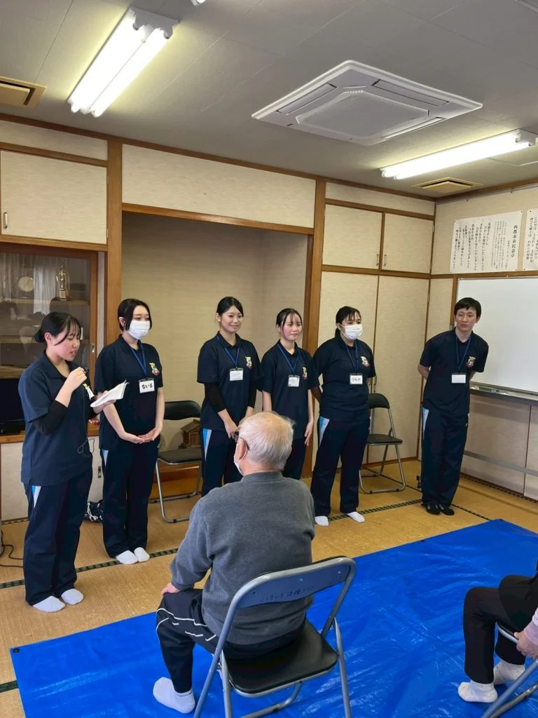 地域の高齢者の方々と自分たちで企画した体操やレクリエーションをいて楽しみながら