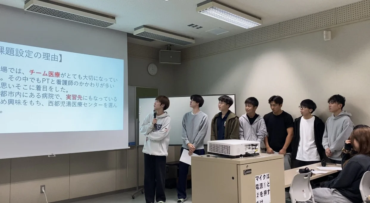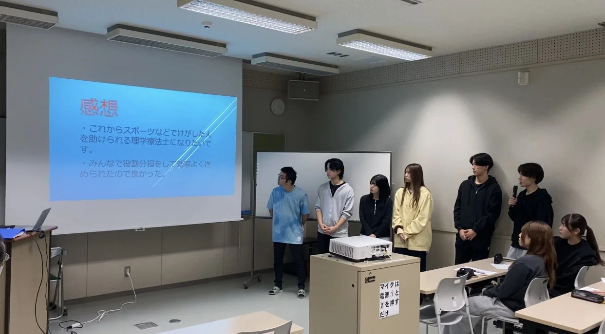 理学療法士養成学科1年生が「医療経営学」の授業内でグループ発表を行いました。