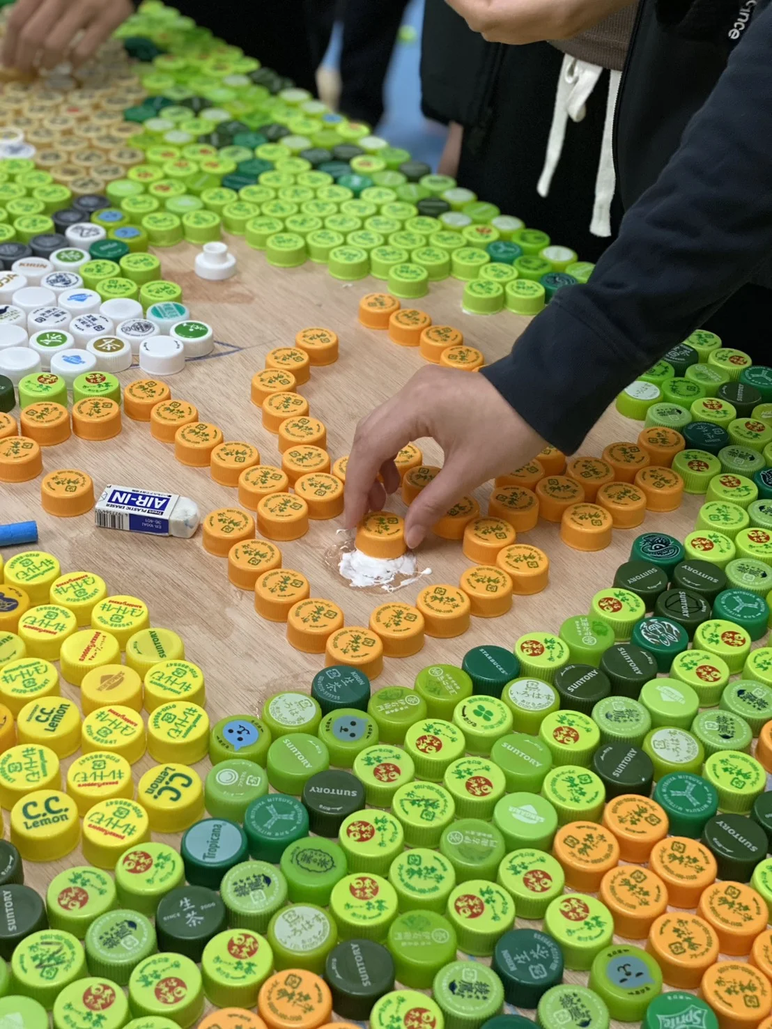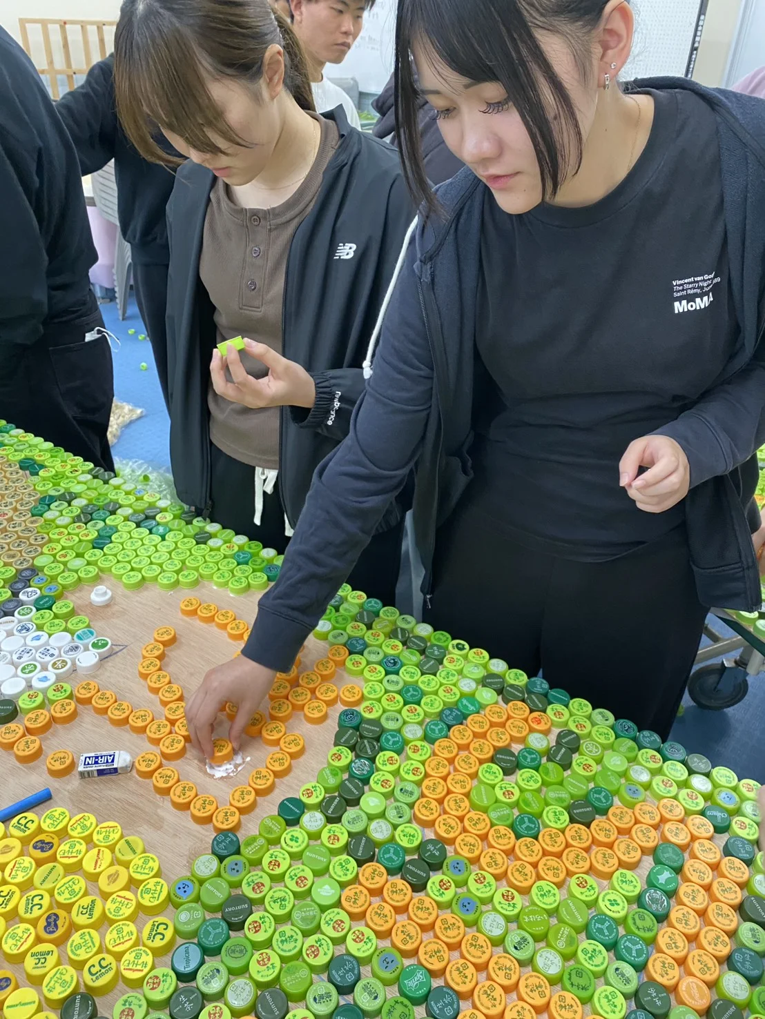昨日は、理学療法士養成学科2年生が協力し、カラフルなキャップを並べながら楽しそうに作業していました。